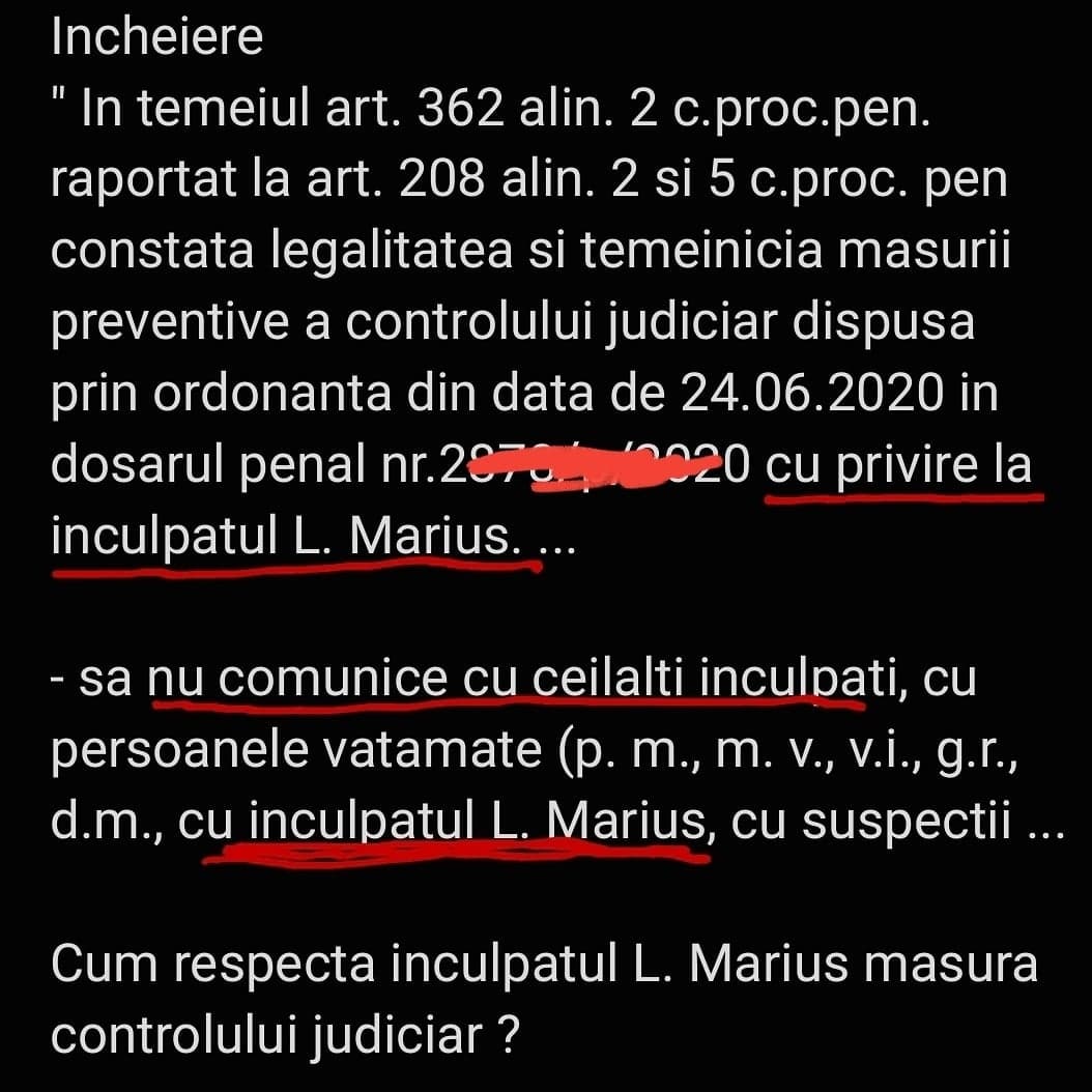 Cum respecta prahoveanul – inculpat L. Marius masura controlului judiciar? (Cristina T.).