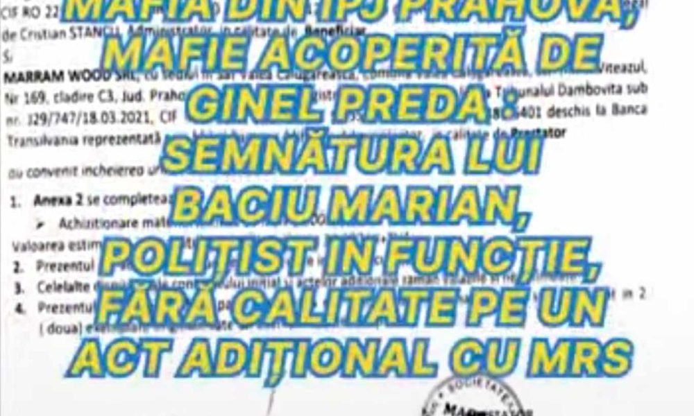 În acest context, prezentăm azi doar actul adițional nr. 3 din 08.03.2023, care include semnătura lui Baciu Marian, în calitate de polițist, în condiții suspecte, fără a avea legitimitatea necesară. De altfel, contractul inițial cu MRS – C 198/16.08.2022 a fost negociat și semnat tot de acest polițist în funcție, nu de reprezentanții legali ai firmei afectate, ceea ce ridică mari semne de întrebare.